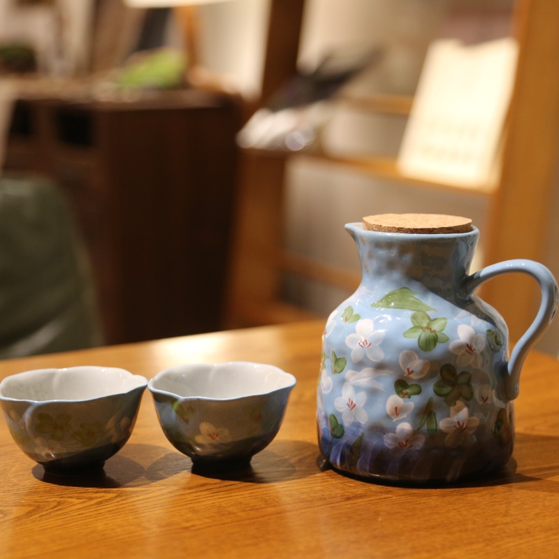 This is a beautiful blue teacup/coffee set (including a pitcher and two cups), adorned with delicate floral patterns. It’s perfect for enjoying coffee or tea, adding an elegant touch to your drinking experience. The soft blue hue and charming designs make it not only a practical vessel for beverages but also a lovely decorative piece for your table, blending functionality with aesthetic appeal.