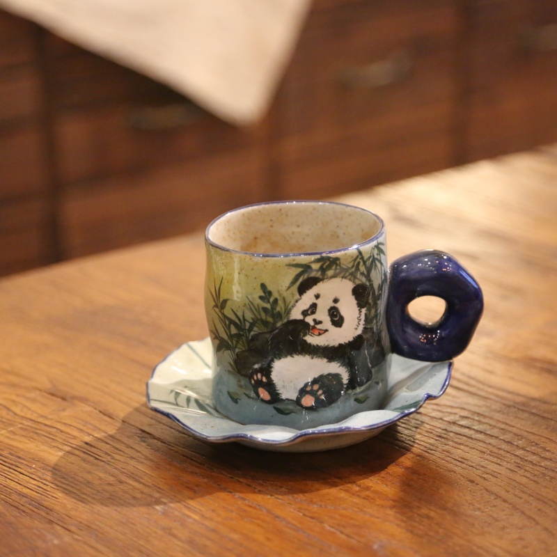This beautiful cup is perfect for coffee or tea. It features an adorable panda pattern, bringing a touch of cuteness and nature (with bamboo) to your drink time. The matching plate has a charming scalloped (lotus – leaf – like) edge, enhancing the elegant and lovely design. Both the cup and plate are not only functional but also a delightful decorative addition to your table, making every sip a pleasant experience.