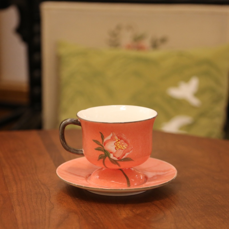 This is a charming teacup and saucer set, perfect for enjoying coffee or tea. Adorned with beautiful floral patterns, it exudes elegance and cuteness. The delicate design, featuring vibrant flowers, makes it not only a practical tableware item but also a lovely decorative piece. Its attractive appearance adds a touch of beauty to any dining or tea – drinking moment, making it a delightful addition to your kitchen or dining collection.