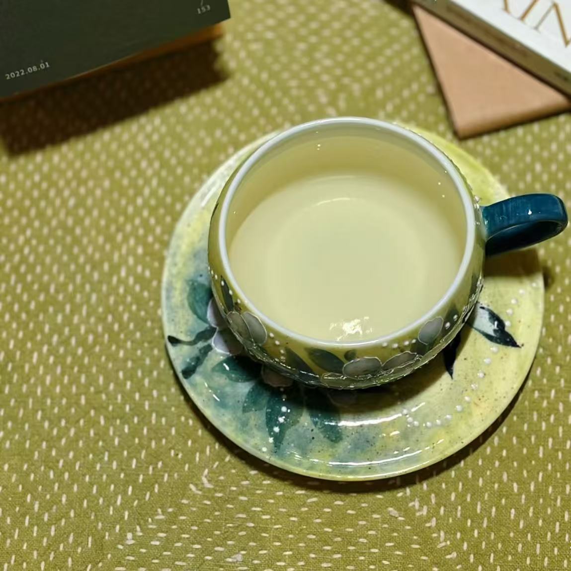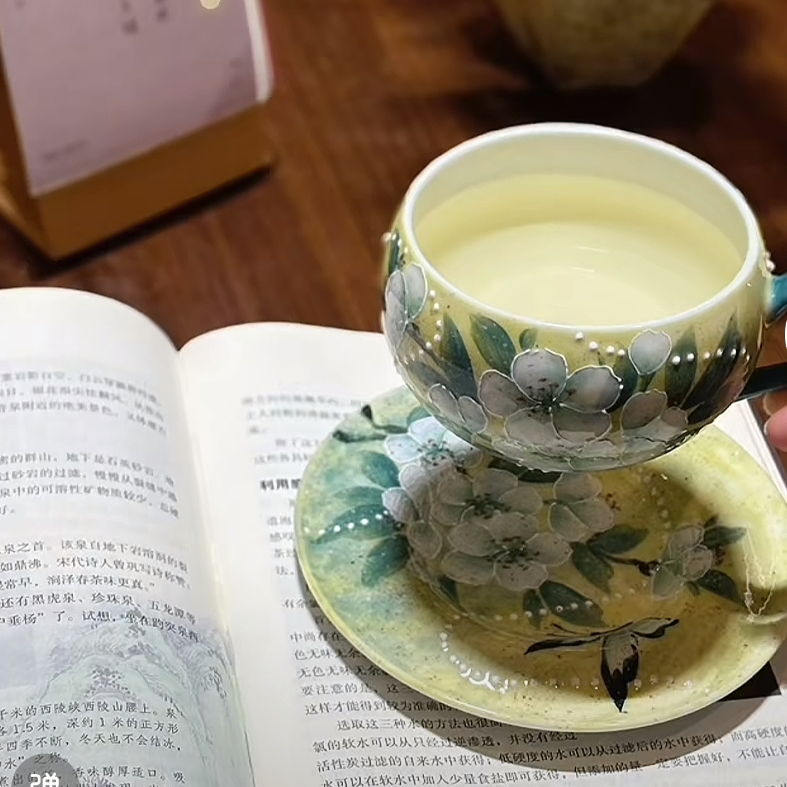 This exquisite ceramic cup and saucer set perfectly blends traditional craftsmanship with a quiet, elegant charm.Adorned with delicately painted pear blossoms’ patterns, the set features a uniquely hued blue handle on the cup that adds a subtle pop of brightness to its muted color palette.The harmonious combination of every element transforms a simple tea-drinking moment into an experience of understated luxury imbued with cultural appeal.