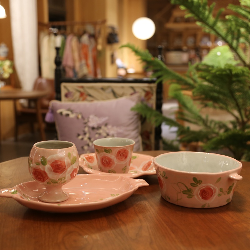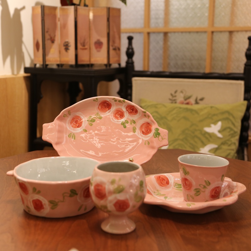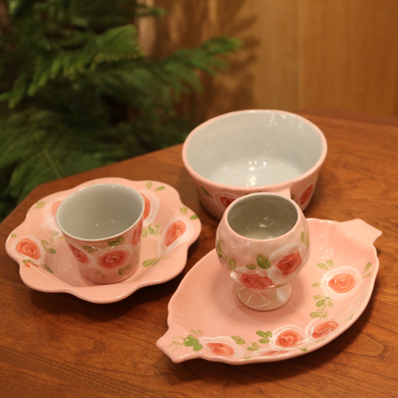 This adorable tableware set, featuring cups and plates, is perfect for enjoying coffee or tea. Adorned with beautiful floral patterns (vibrant red roses with green leaves), it blends charm and functionality. The soft – toned base with vivid flower designs makes it visually appealing. Whether for daily use or special moments, this set adds a touch of elegance to your dining experience, combining beauty and practicality seamlessly.
