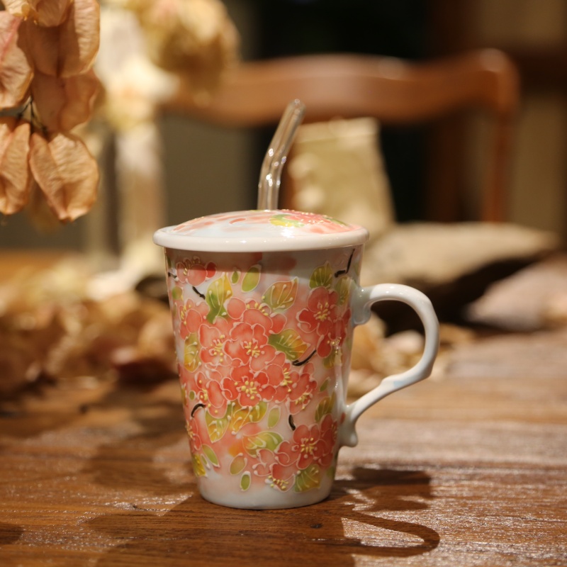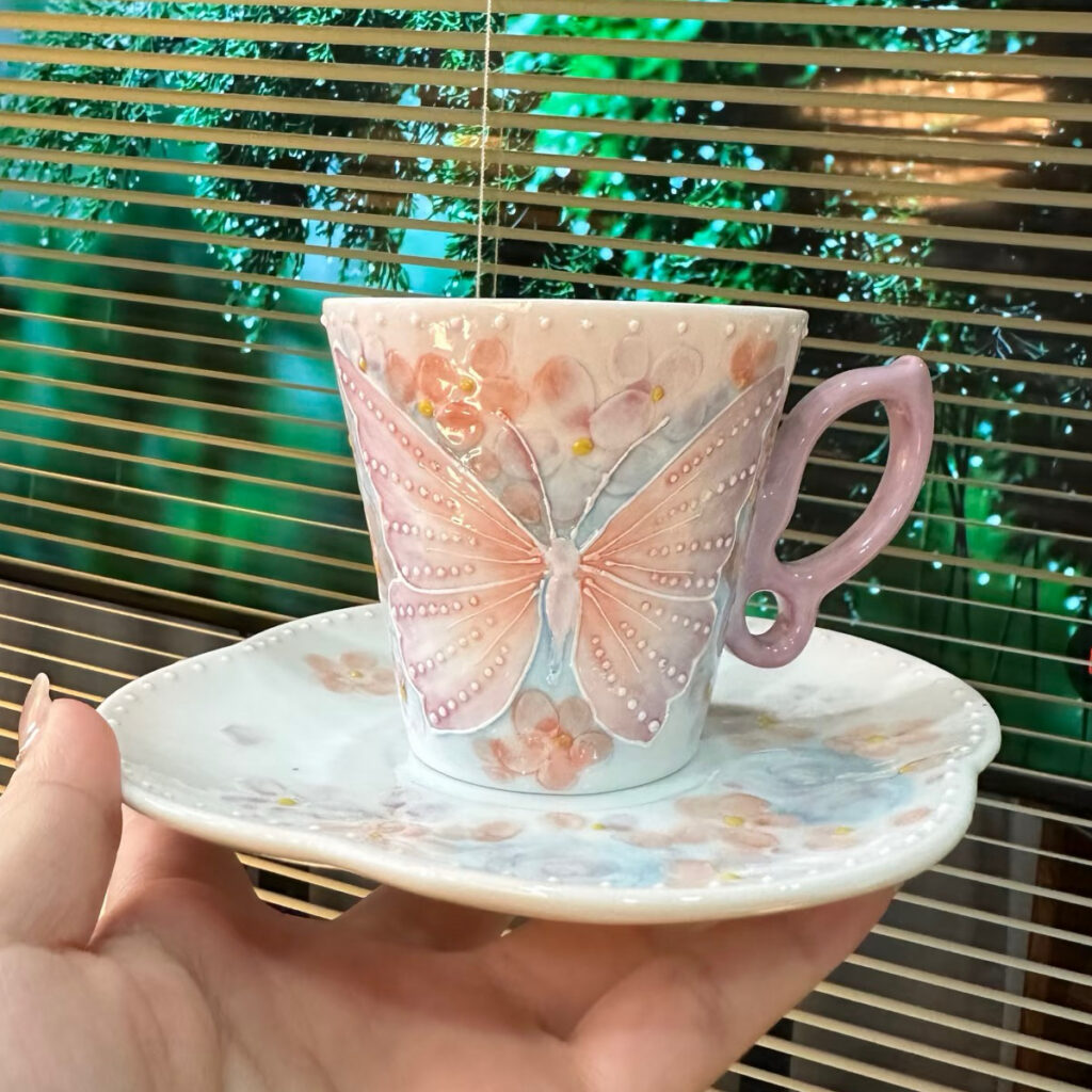 This mug is decorated with three-dimensional glaze, creating a tactile, textured surface that lends the design exceptional refinement and vividness.
