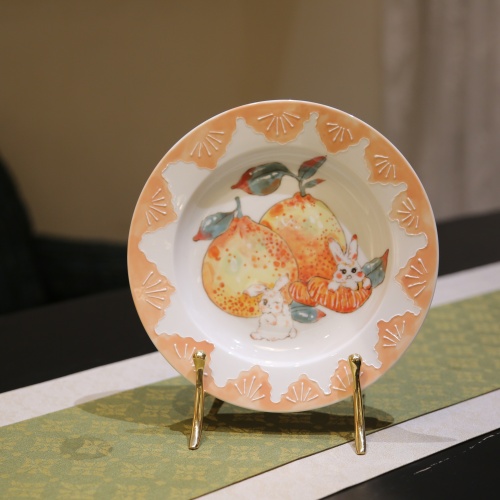 This plate is decorated with three-dimensional glaze, creating a tactile, textured surface that lends the design exceptional refinement and vividness.