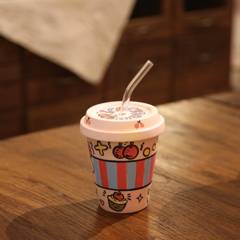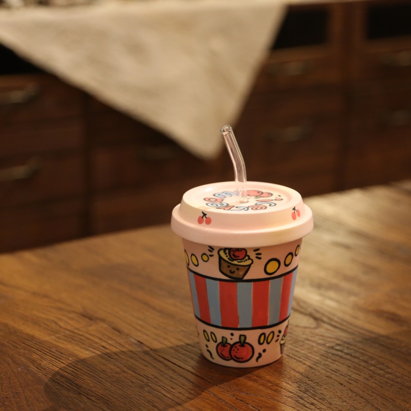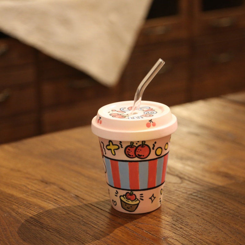 Meet your new favorite mug, designed for pure joy! This charming vessel features an adorable puppy peeking out from a decadent ice cream sundae, complete with a cookie and sprinkles. Playful red and blue stripes, stars, and hearts create a vibrant, cheerful pattern. Topped with a decorative white lid and a clear straw, it’s the perfect companion for your favorite cold drink. Every detail, from the cute puppy face to the happy colors, is crafted to turn your everyday beverage into a sweet, delightful moment. It’s more than a cup—it’s a little dose of happiness.
