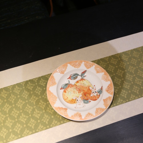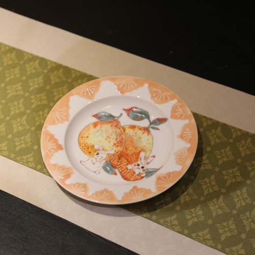 This plate is decorated with three-dimensional glaze, creating a tactile, textured surface that lends the design exceptional refinement and vividness.